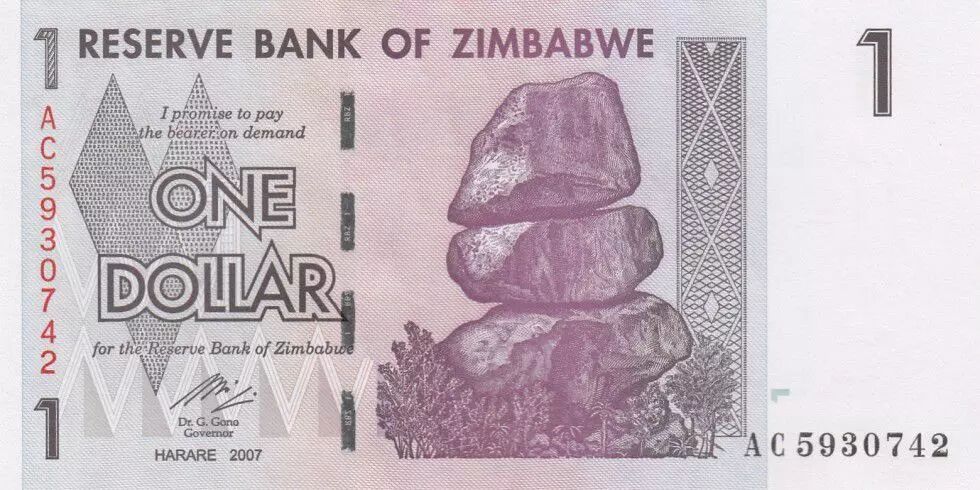 Banknote Zimbabwe 1 Dollar Buffalo - Waterfall - 2008