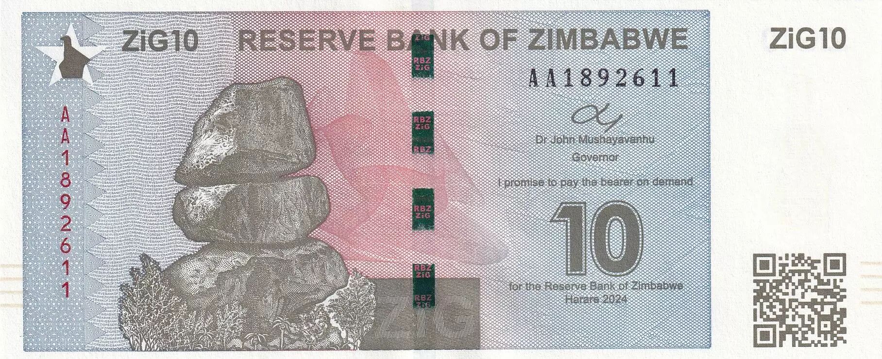 Home > World Banknotes > African Banknotes > Zimbabwe > Zimbabwe 10 Zig - Chiremba - 2024 - Serial AA