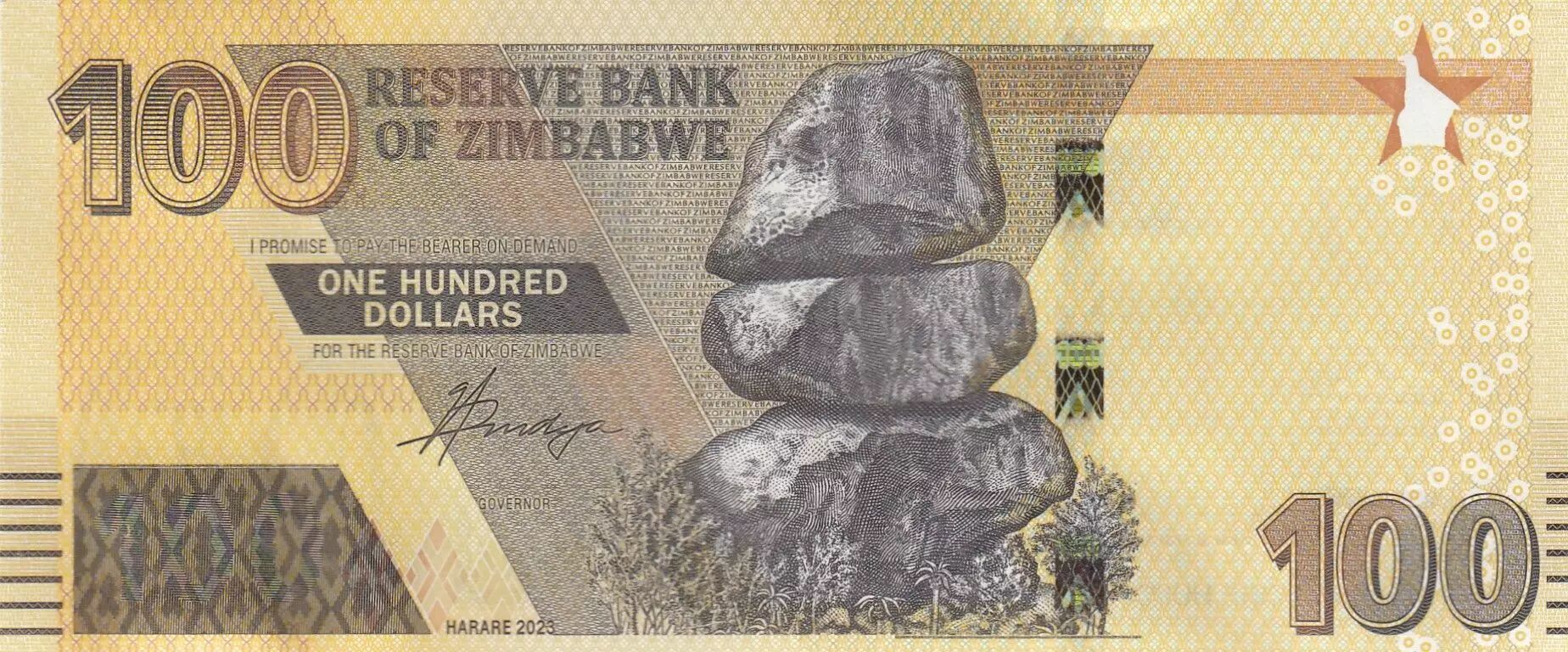 La valeur faciale de 100 dollars indique le pouvoir d'achat que représente ce billet au sein de l'économie zimbabwéenne. L'année d'émission, 2023, permet de situer ce billet dans le contexte économique et politique contemporain du pays. La série AL peut servir à des fins de suivi et de contrôle de la production de billets par l'institut émetteur.