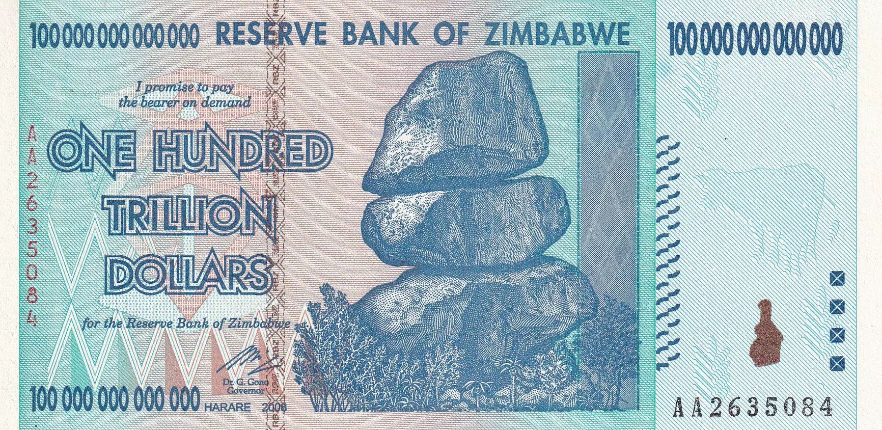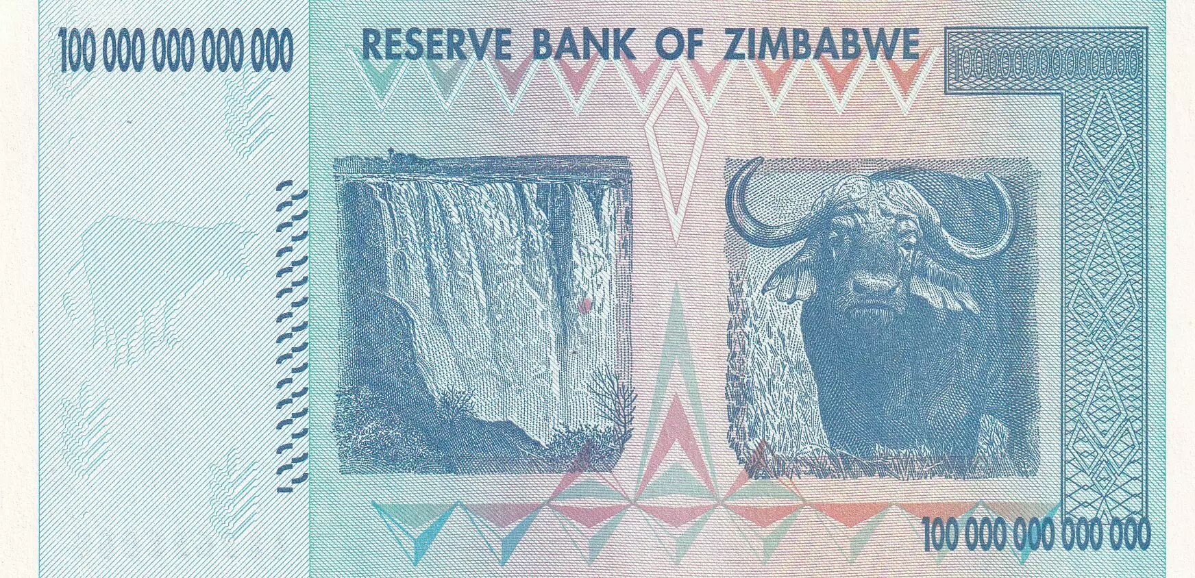 Banknote Zimbabwe 100 Trillion Dollars - Chiremba - Victoria falls & water buffalo - 2008 - P.91