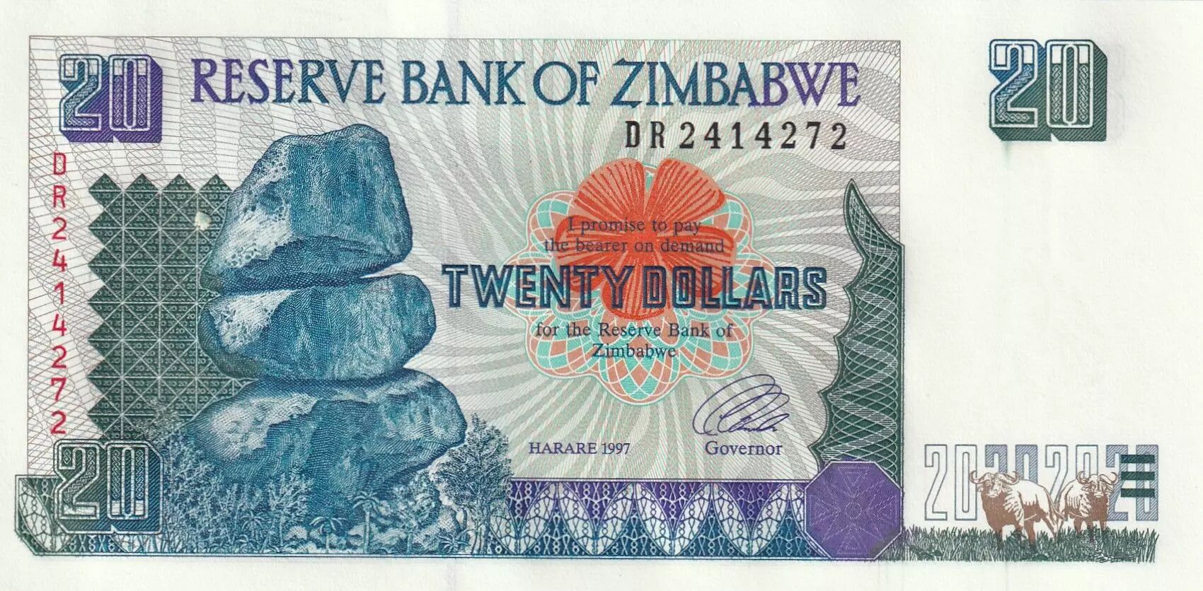 Home > World Banknotes > African Banknotes > Zimbabwe > Zimbabwe 20 Dollars - Chiremba - 1997