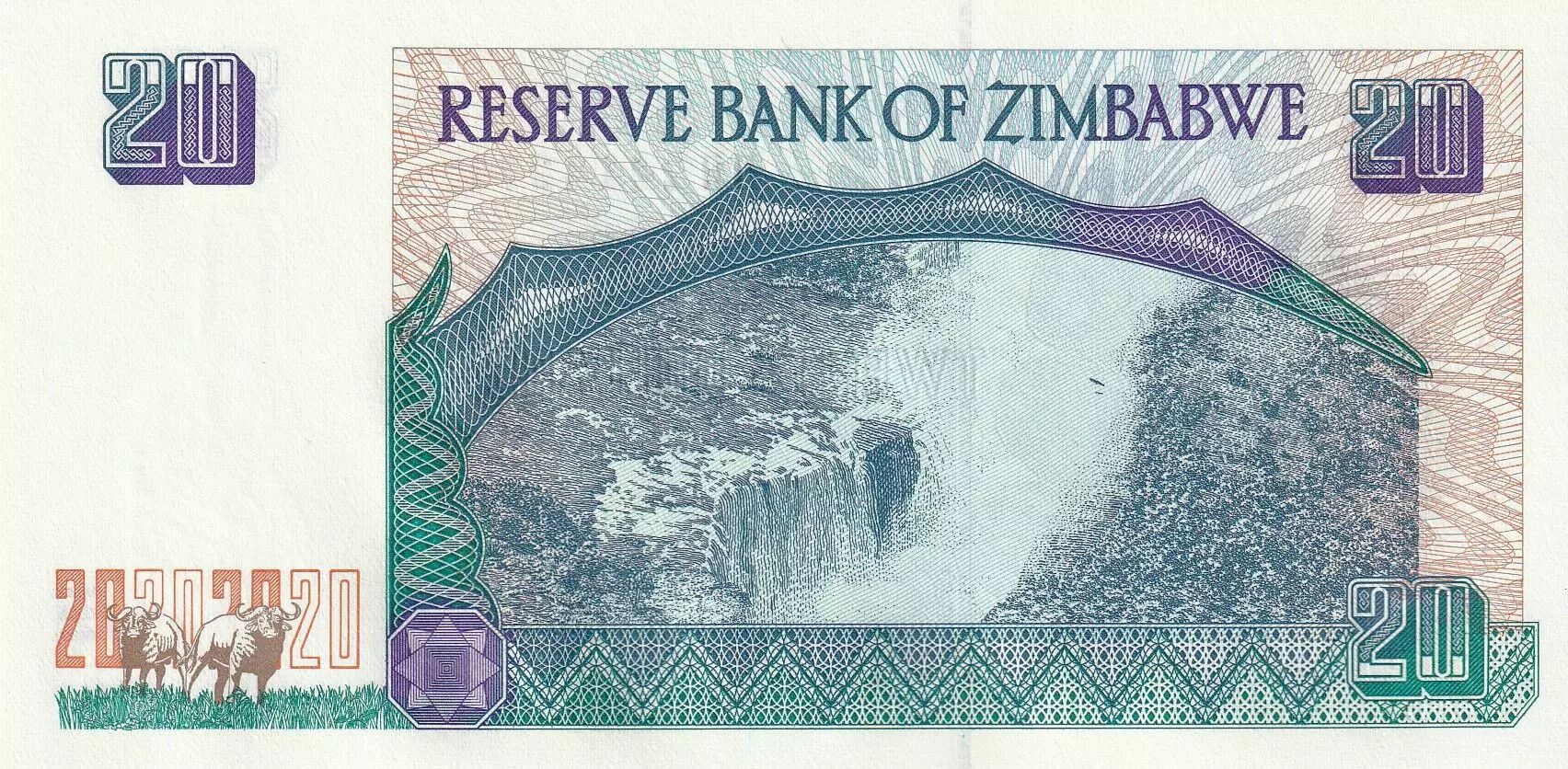 Accueil > Billets du Monde > Billets d'Afrique > Zimbabwe > Zimbabwe 20 Dollars - Chiremba, Paysage - 1997